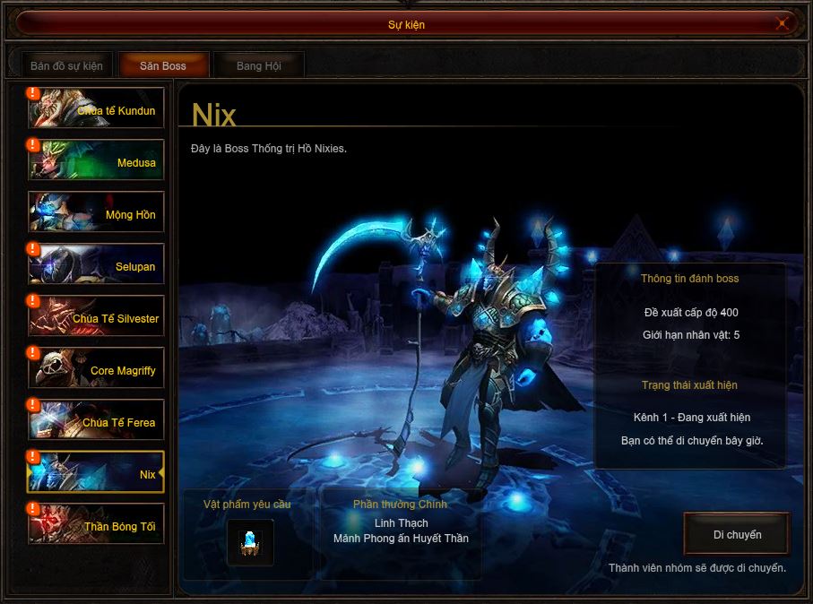 Cách tham gia săn Boss NIX